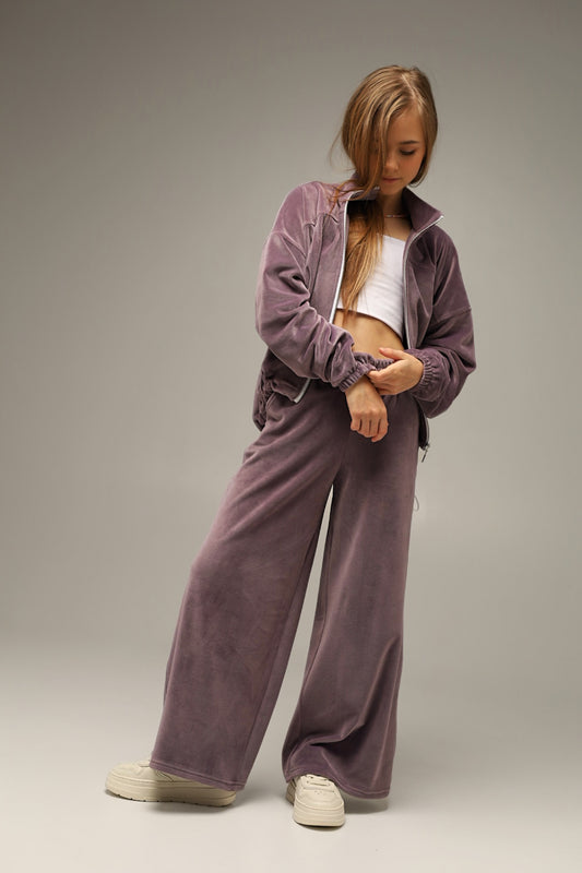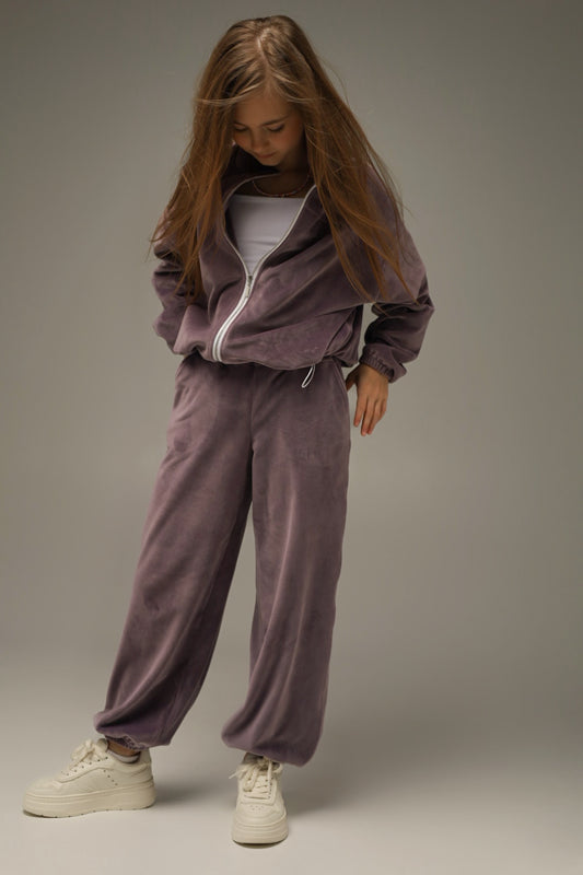 Joggery Soft Velour Liliowy
