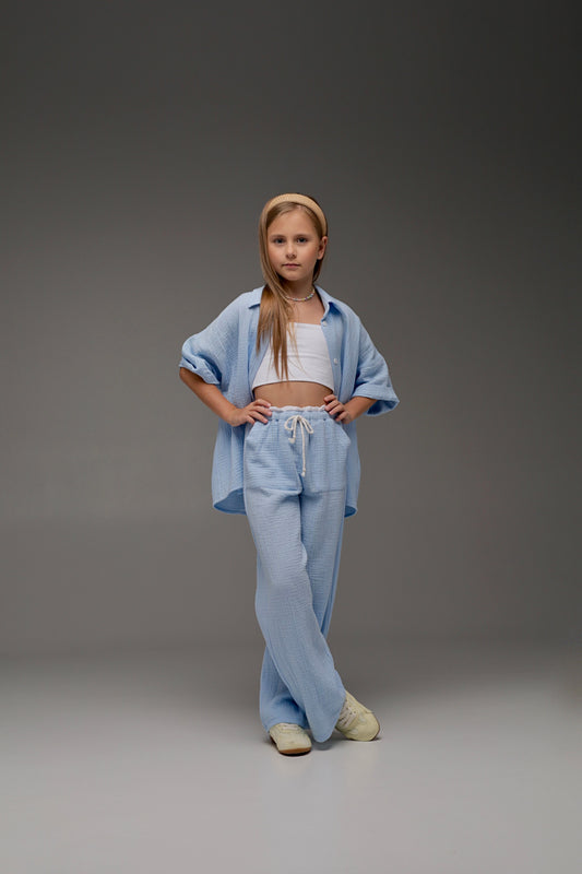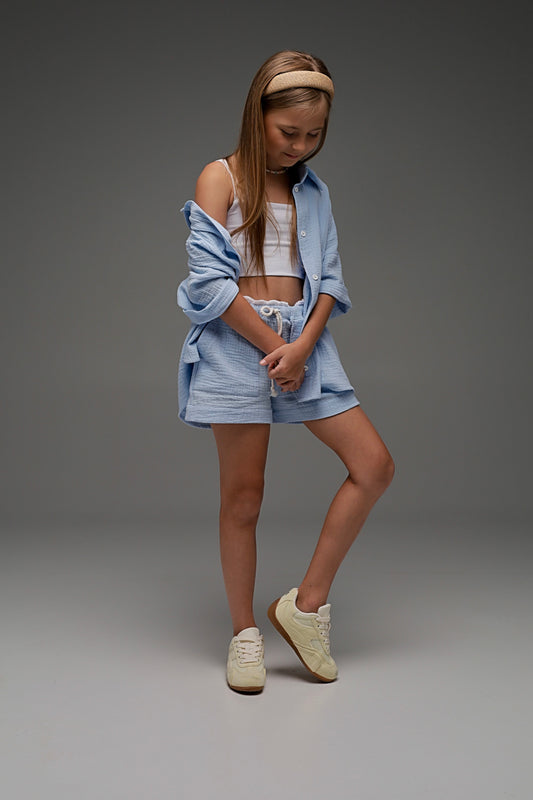 Szorty muślinowe MICHI (niebieski — niebo w słońcu)