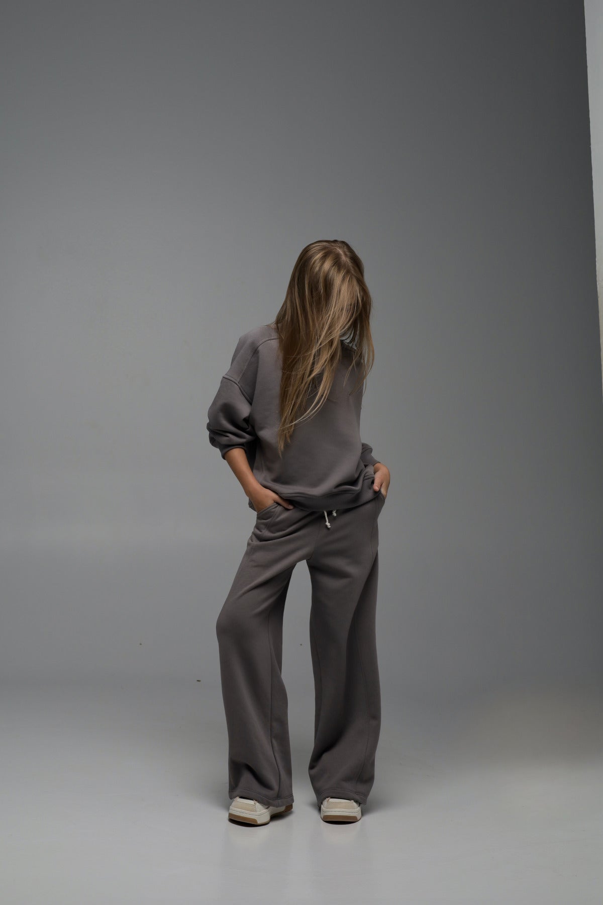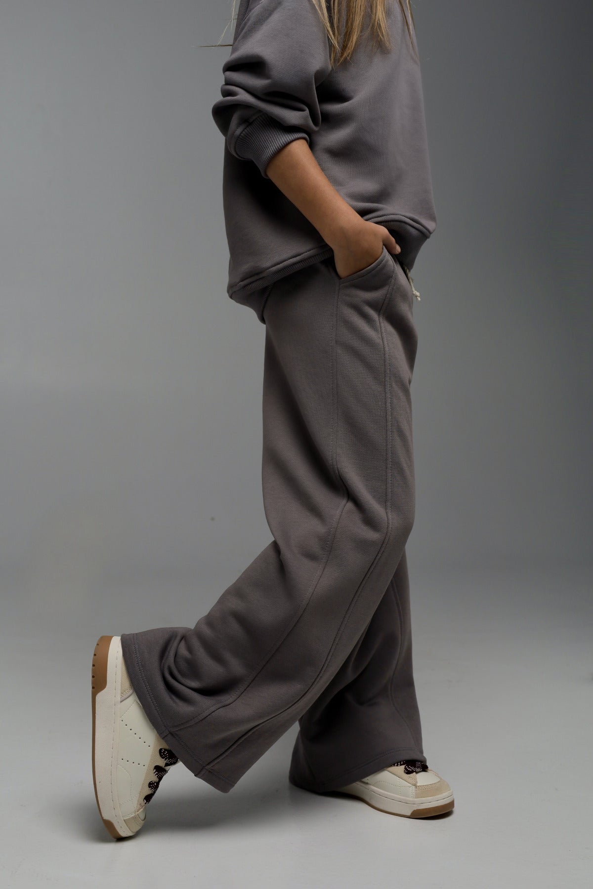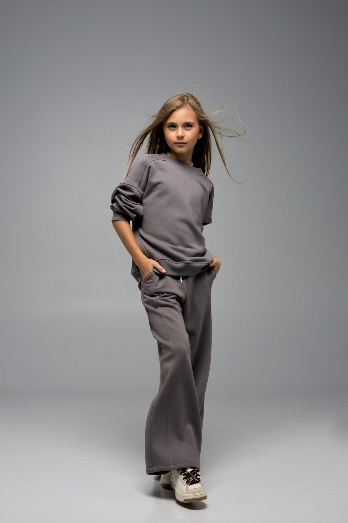 Nowoczesny fason w wersji mini — spodnie dzwony MONO w odcieniu eleganckiego grafitu to idealny wybór na co dzień i na każdą okazję. Miękka dzianina diagonalna premium (320 g) zapewnia pełną swobodę ruchów, a elastyczny pas ze sznurkiem dopasowuje się do sylwetki dziecka. Dekoracyjna wstawka po boku dodaje charakteru, sprawiając, że nawet codzienny outfit wygląda wyjątkowo. MONO to połączenie wygody, stylu i jakości, które rośnie razem z dzieckiem.