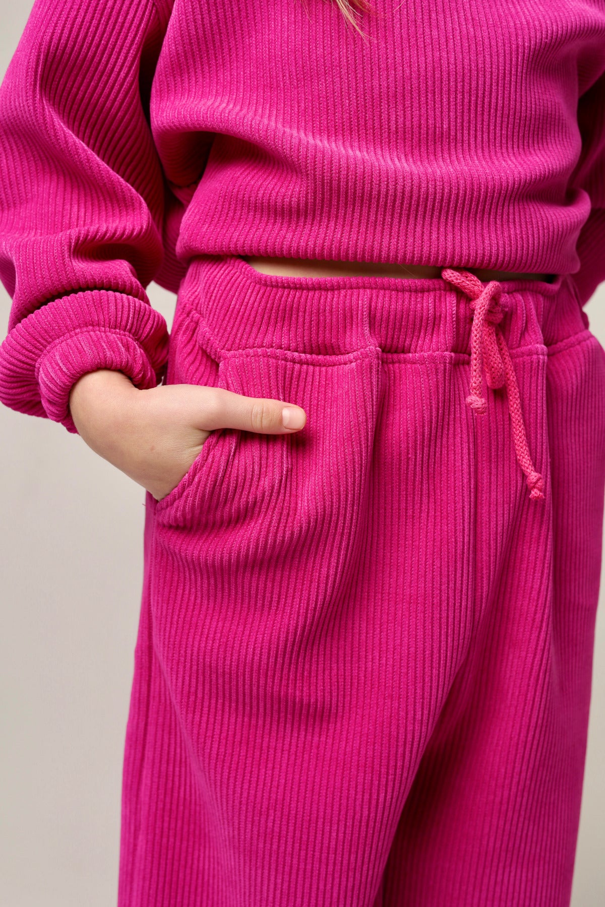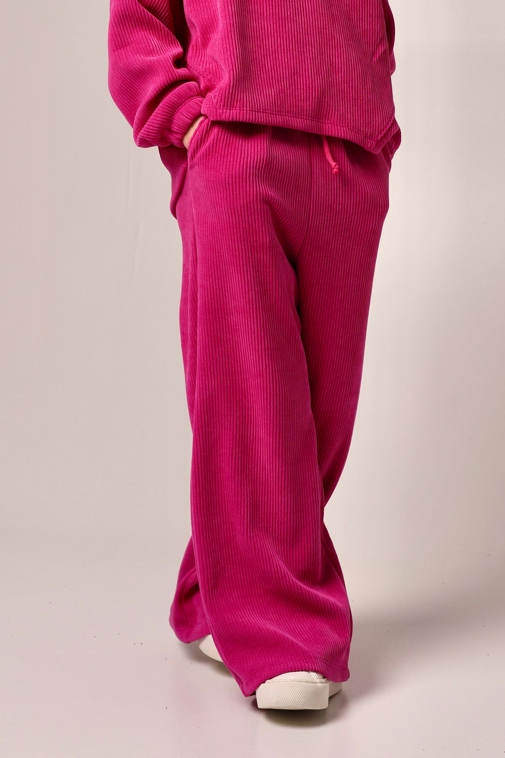 Stylowe spodnie dzwony – wygoda i modny krój w jednym! Te szerokie spodnie dzwony w kolorze intensywnej fuksji to idealne połączenie stylu i komfortu. Wykonane z elastycznej, miękkiej i przyjemnej w dotyku tkaniny, zapewniają maksymalną swobodę ruchów. Elastyczny pas na gumce dopasowuje się do sylwetki, a dodatkowy sznurek do regulacji pozwala idealnie dostosować obwód w talii. Swobodny, szeroki fason nadaje lekkości i sprawia, że spodnie świetnie układają się na sylwetce. Doskonały wybór zarówno na co dzień, jak i na wyjątkowe okazje – styl i wygoda w najlepszym wydaniu!