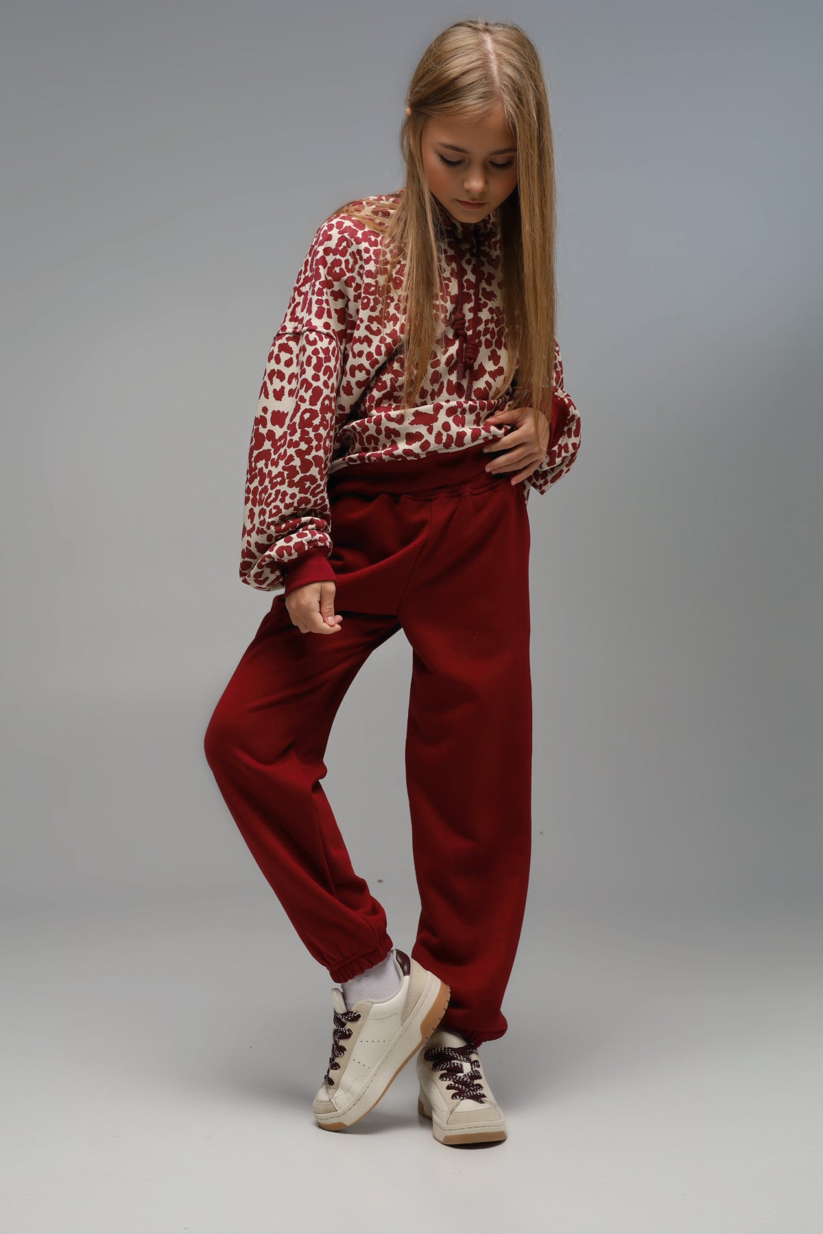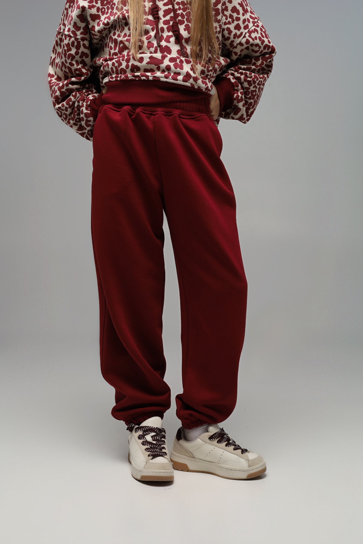 Miękkie i wygodne joggersy Michi w odcieniu bordo — stworzone dla pełnej swobody ruchu i codziennego komfortu. Model o luźnym kroju z elastycznym pasem i regulowanym sznurkiem. Wykończone w dole nogawek miękkim ściągaczem z lekkim napięciem, który utrzymuje fason i dodaje sportowego charakteru. Idealne do bluzy oversize Michi lub klasycznego t-shirtu — na co dzień, do szkoły lub na spacer.