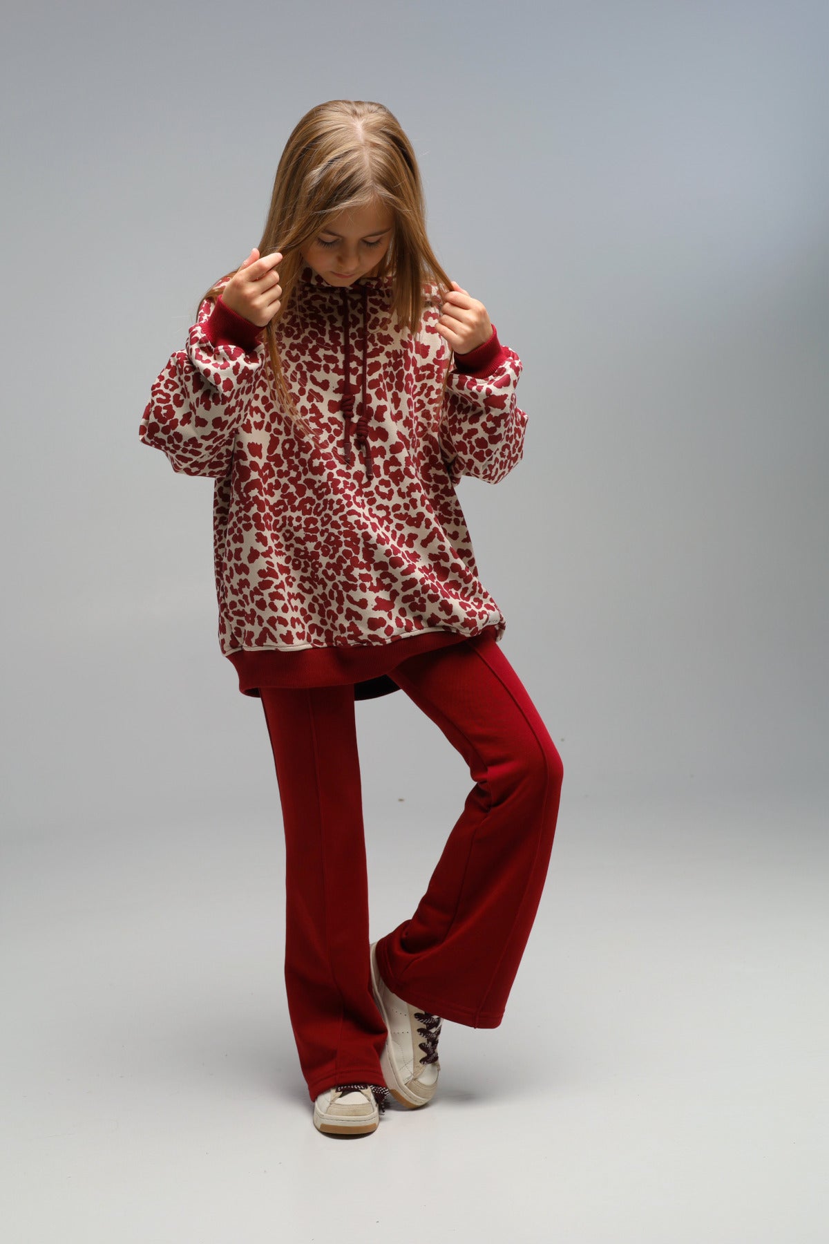 Legginsy Michi w odcieniu bordowym to połączenie wygody i elegancji w codziennym wydaniu. Elastyczna talia, zaszyte kanty z przodu i rozszerzany dół nogawek nadają im wygląd spodni, zachowując miękkość i komfort diagonalnej dzianiny dresowej premium. Model idealny zarówno do bluzy z kapturem Michi, jak i do minimalistycznych stylizacji na co dzień.