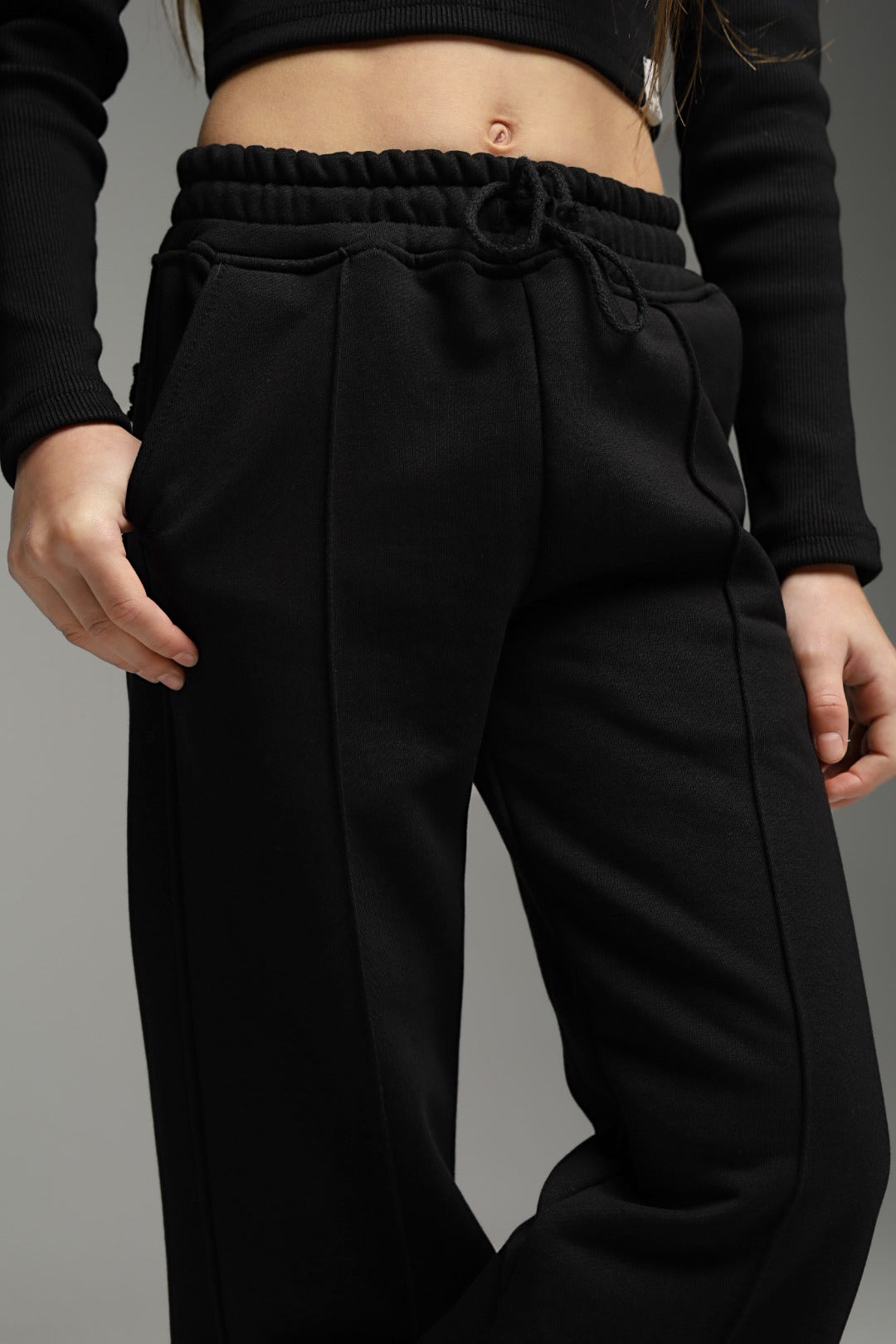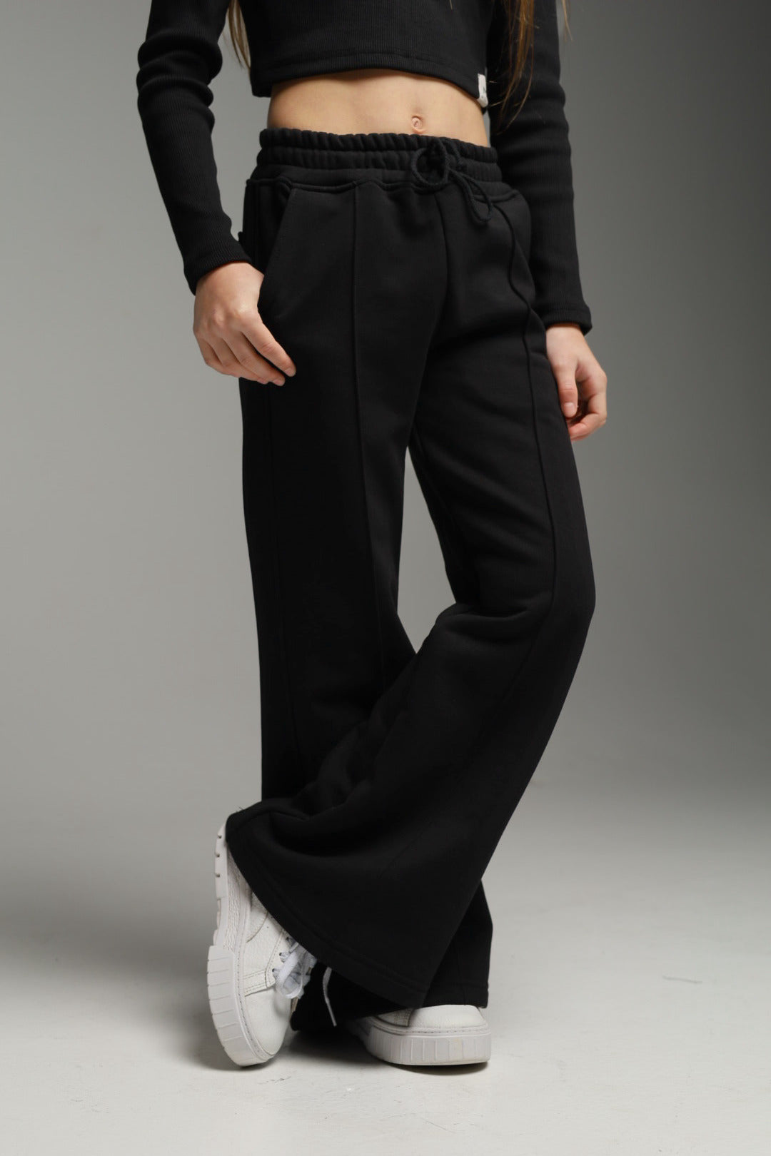 Wyraziste spodnie o rozszerzanej nogawce, zaprojektowane w duchu nowoczesnej, młodzieżowej mody. Starannie dopracowana linia spodni pięknie wydłuża sylwetkę i nadaje stylizacji lekkości oraz wyrazistego charakteru. Rozszerzany krój inspirowany dorosłą modą sprawia, że spodnie wyglądają bardzo stylowo i aktualnie, a jednocześnie pozostają komfortowe w codziennym noszeniu. Mięsista dzianina dresowa pętelkowa premium o wysokiej gramaturze dobrze trzyma formę, miękko układa się na sylwetce i zapewnia wygodę bez kompromisów jakościowych.
