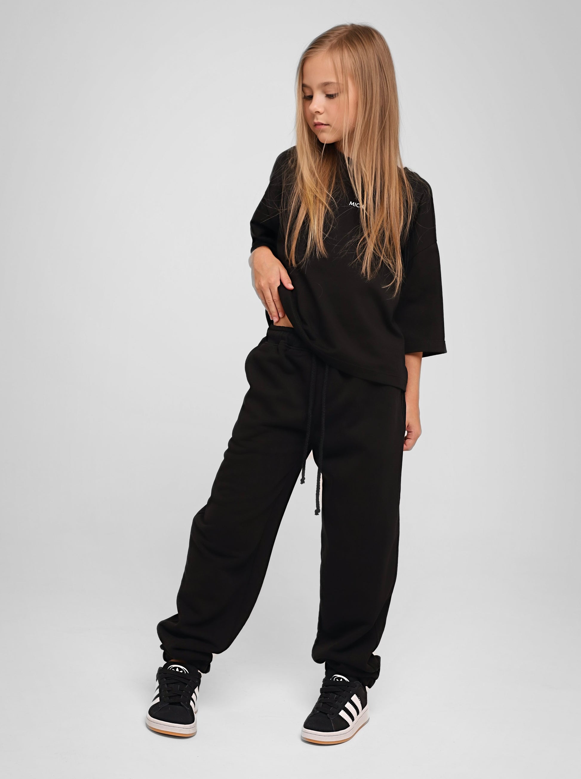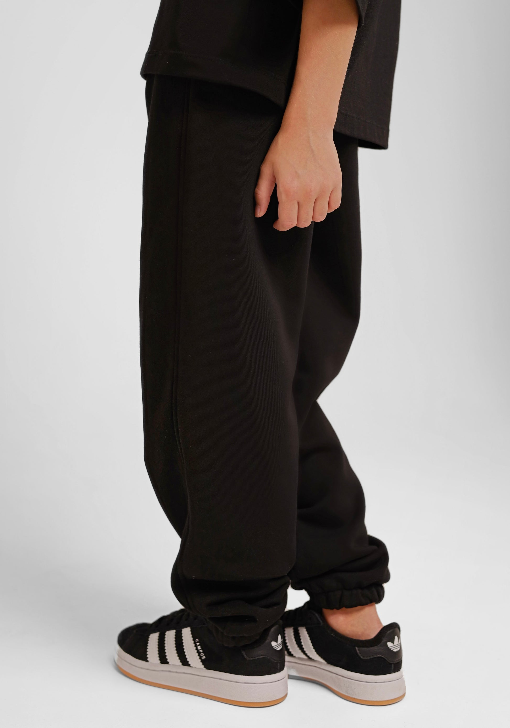 Spodnie joggery sportowe o luźnym kroju, z elastycznym pasem, sznurkiem w talii i miękkimi ściągaczami na dole nogawek.