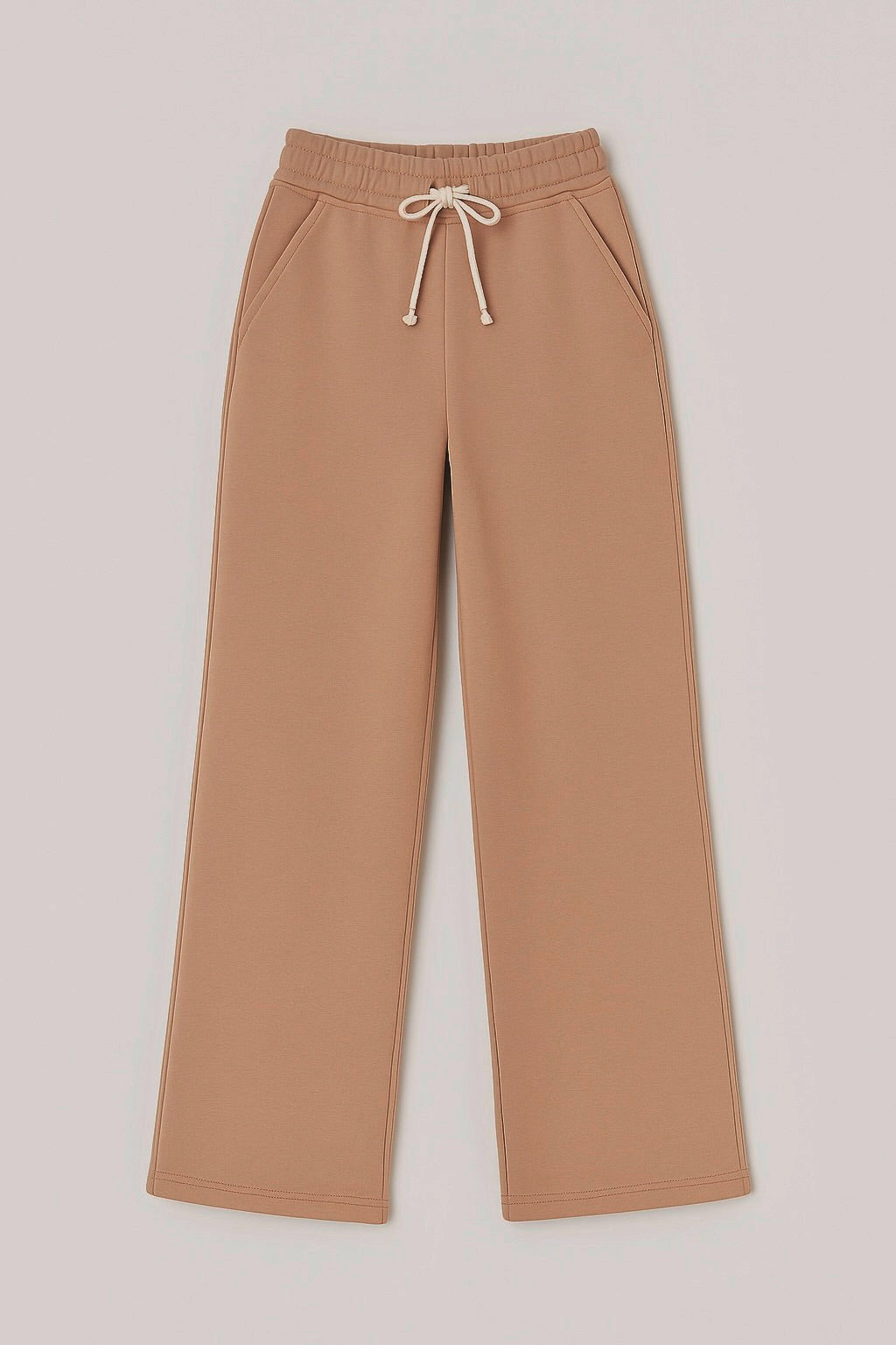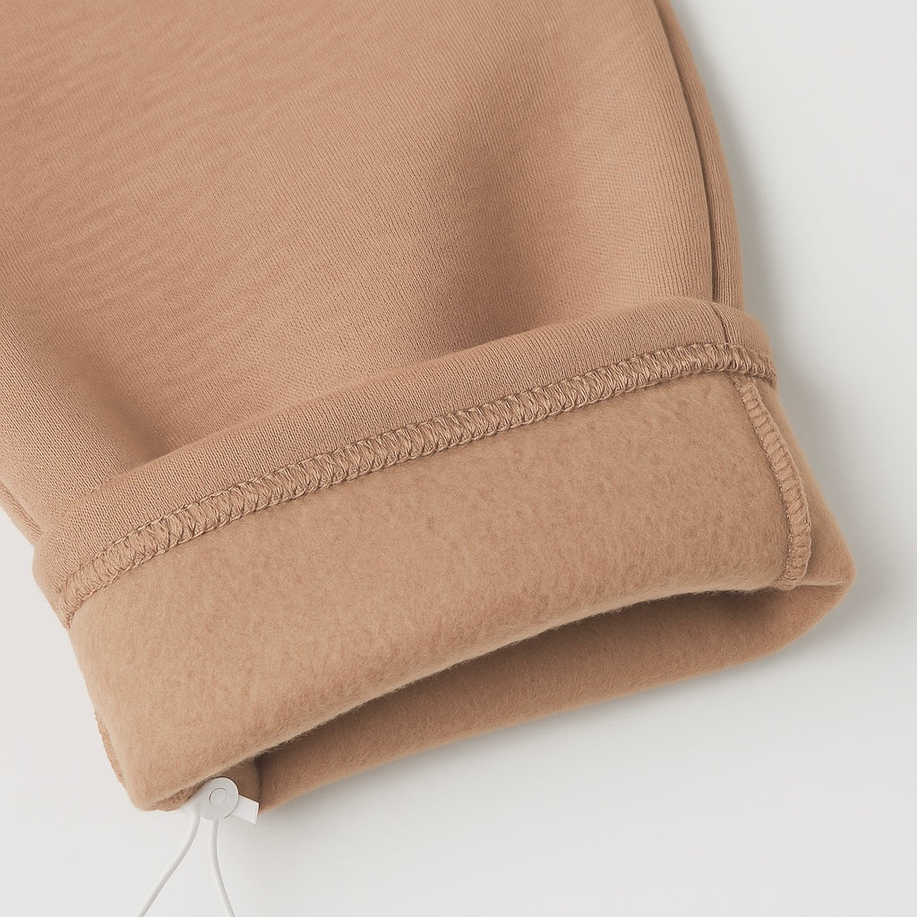 Jedne spodnie – dwa style. Można je nosić klasycznie, w formie prostych dzwonów, albo ściągnąć dół delikatną gumką i stworzyć wygodne joggery. Ten model daje pełną swobodę ruchu i stylizacji – idealny na co dzień, do szkoły i na spacer. Uszyte z grubszej, drapanej dzianiny z efektem misia od spodu, są miękkie, ciepłe i wyjątkowo przyjemne w dotyku. Elastyczna talia ze sznurkiem dopasowuje się do sylwetki, a fason z lekko rozszerzaną nogawką nadaje całości lekkości i nowoczesnego wyglądu.