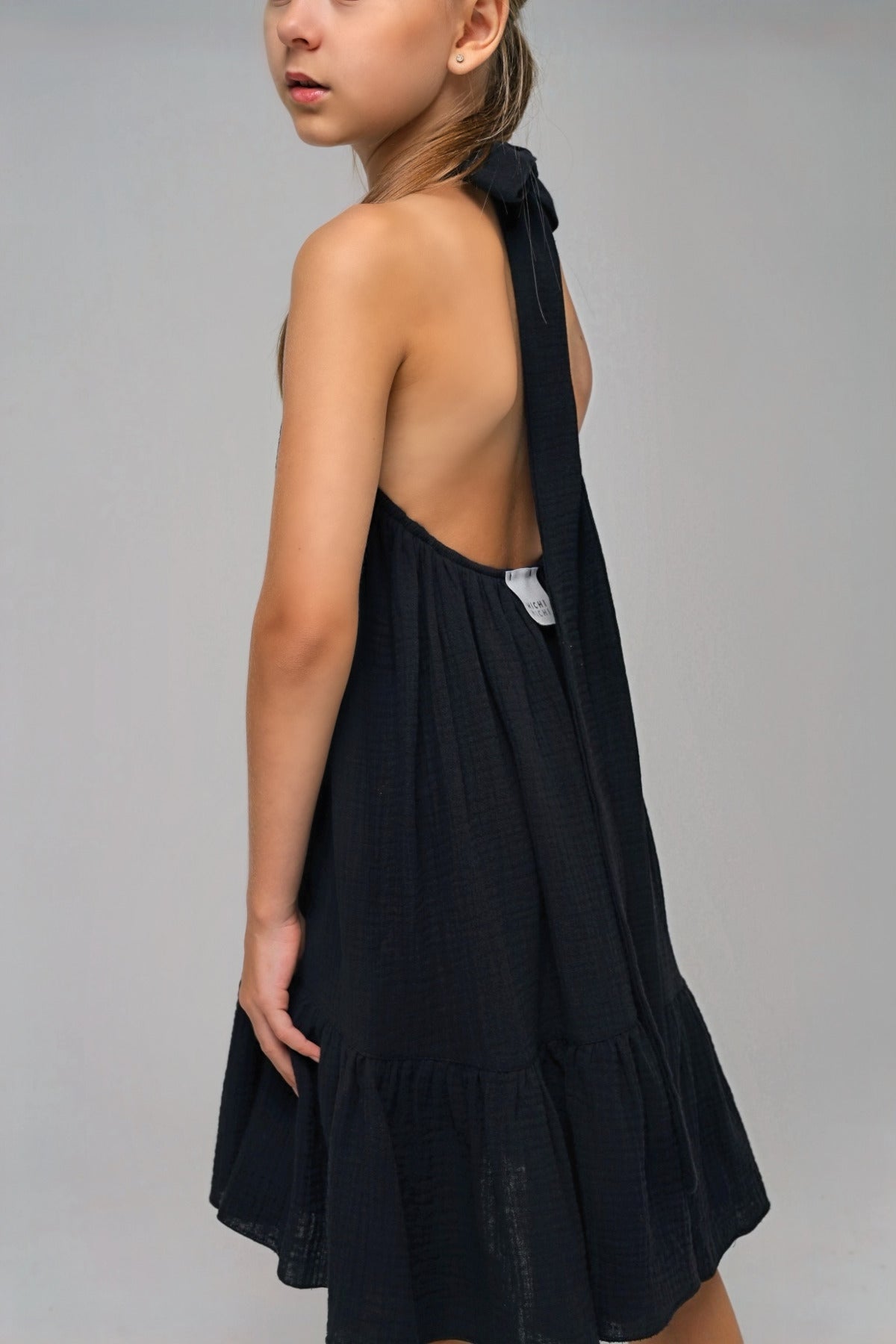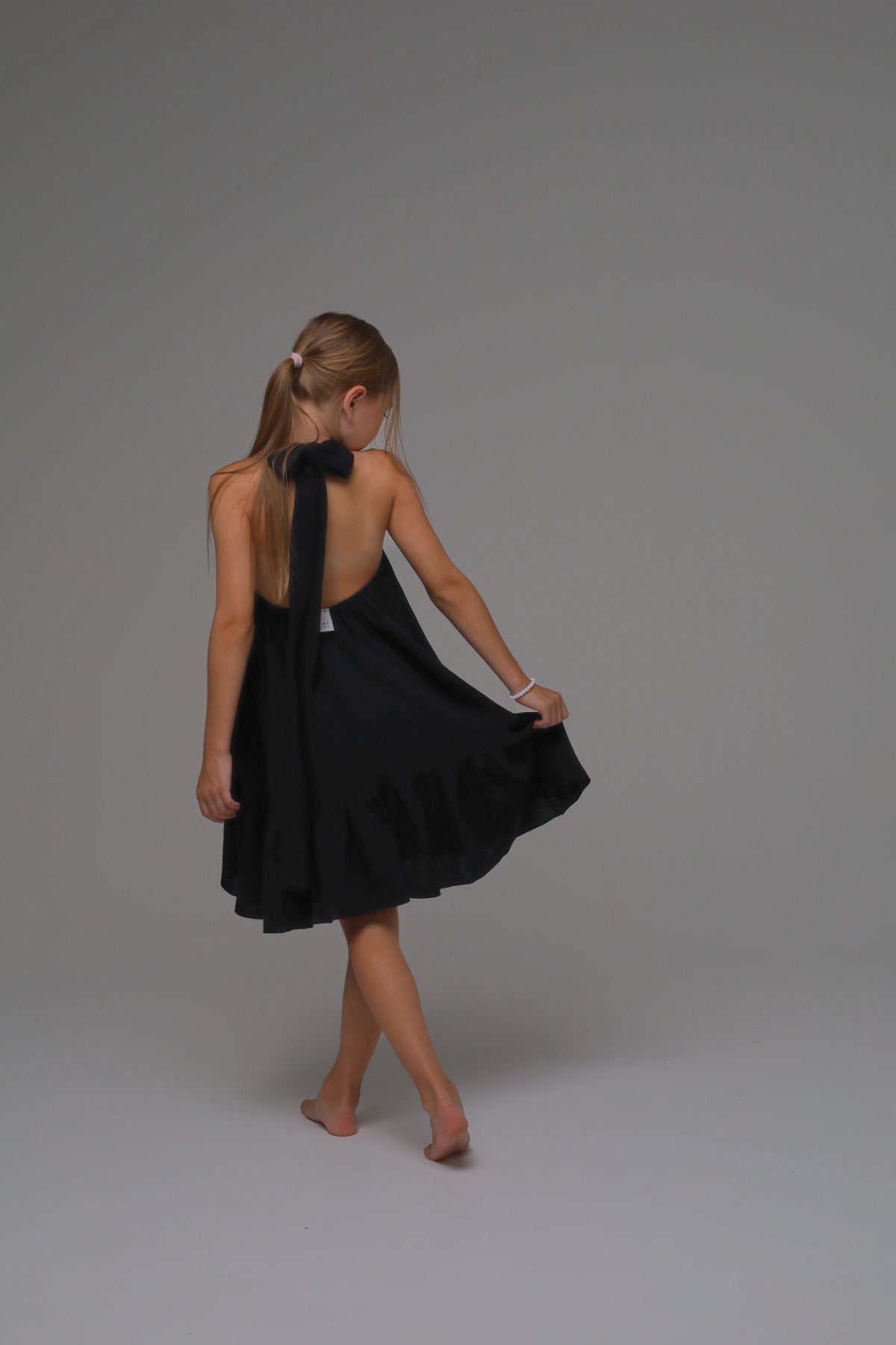 Czarująca, lekka i pełna wdzięku — taka właśnie jest nasza sukienka Luna, uszyta z delikatnego, oddychającego muślinu ze 100% bawełny. Model wyróżnia się efektownie odkrytymi plecami i długim wiązaniem na kokardę, które można swobodnie regulować. Z tyłu wszyta została delikatna, miękka gumka, która biegnie przez całą linię pleców — dzięki niej sukienka subtelnie dopasowuje się do sylwetki i zapewnia maksymalny komfort. Rozkloszowany dół z falbaną pięknie wiruje w tańcu i dodaje sylwetce lekkości.