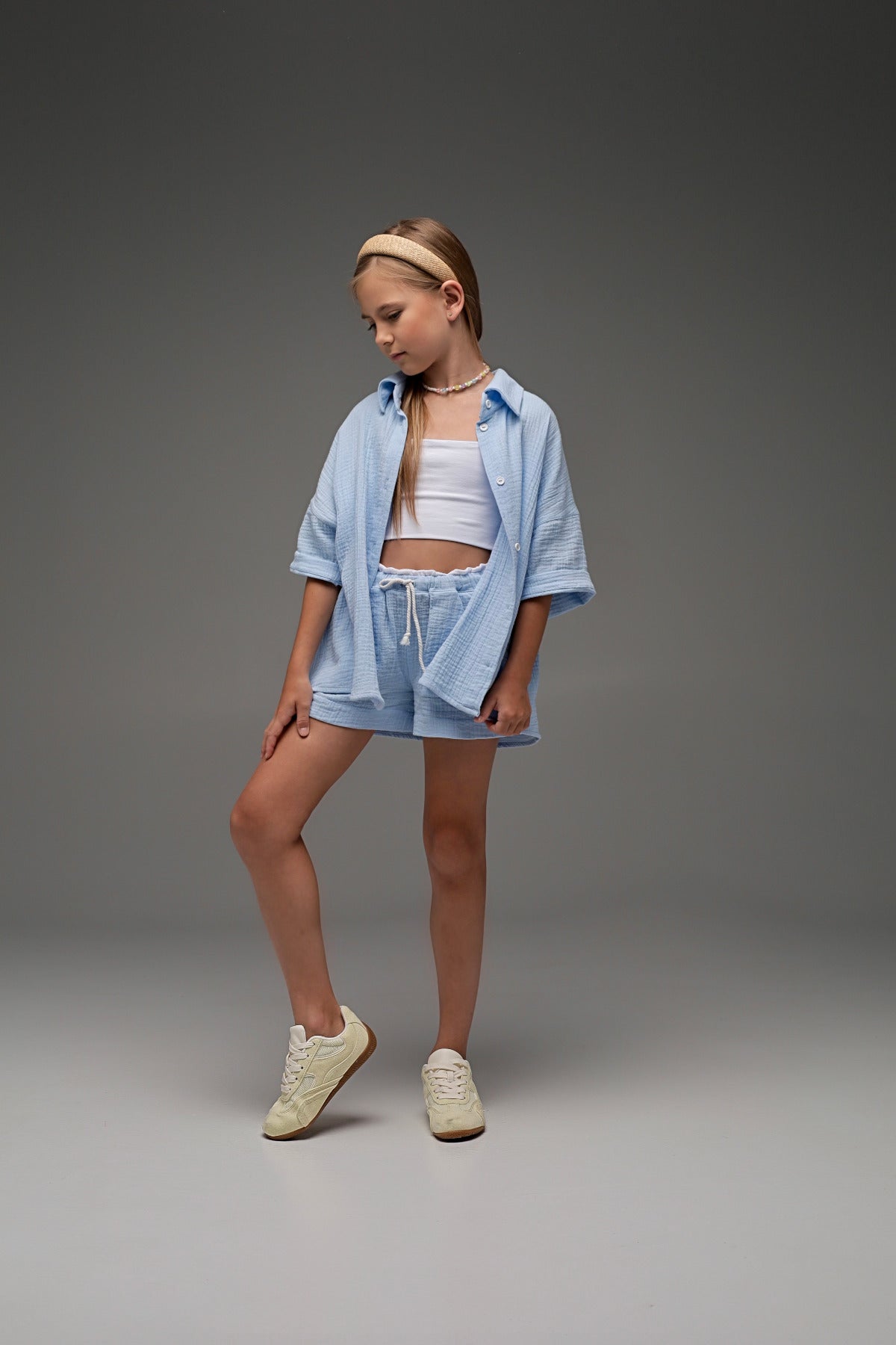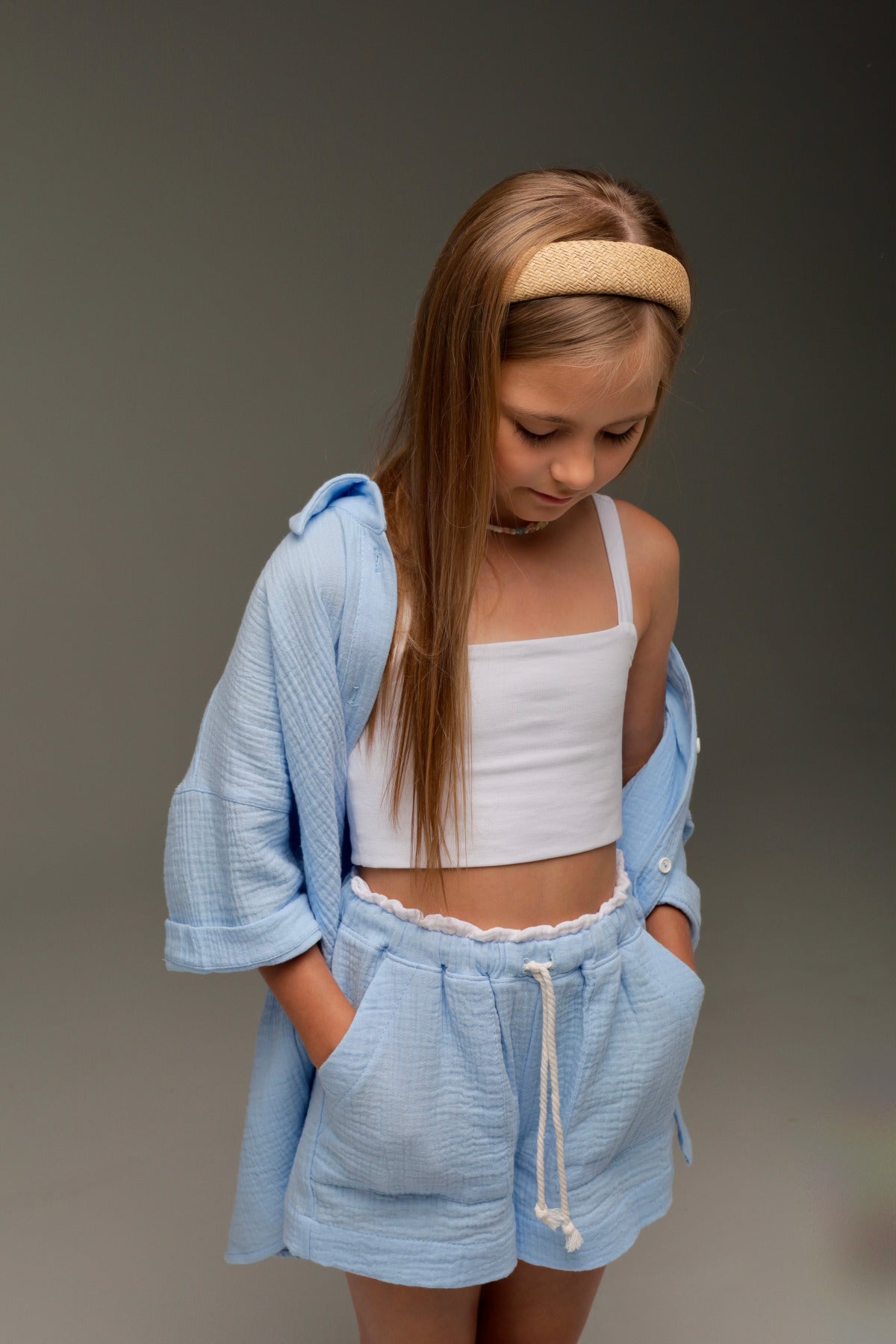 Szorty muślinowe MICHI (niebieski — niebo w słońcu)