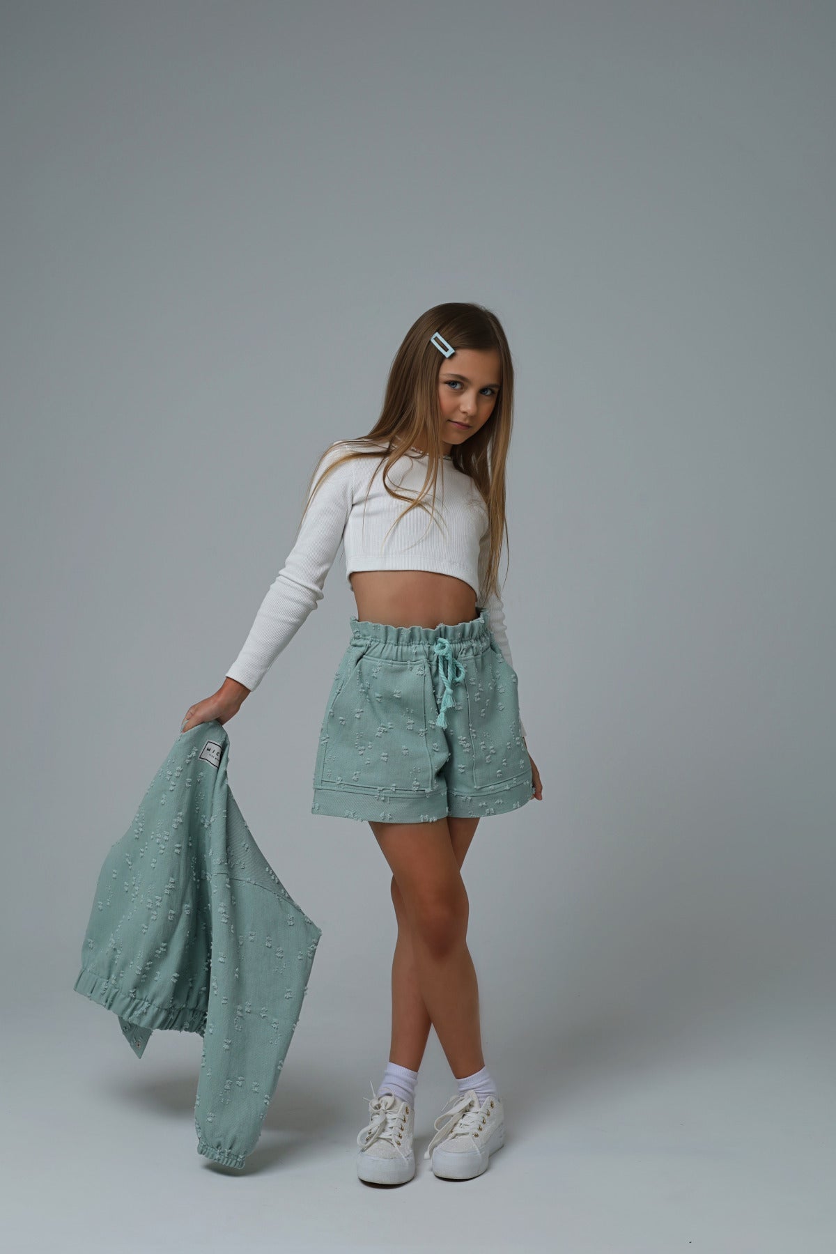 Top „Milky” z dżaniny ściągaczowej – w odcieniu mlecznej wanilii. Krótki top uszyty z elastycznej i miękkiej dżaniny ściągaczowej. Idealnie dopasowuje się do sylwetki, nie krępując ruchów. Odcień mlecznej wanilii dodaje mu subtelności i wyjątkowego uroku – to nie klasyczna biel, a ciepły, lekko śmietankowy ton, który pięknie komponuje się z letnią opalenizną. Minimalistyczny fason sprawia, że to świetna baza do wielu stylizacji – od codziennych po bardziej efektowne.